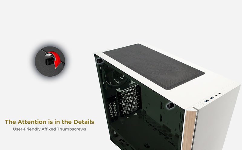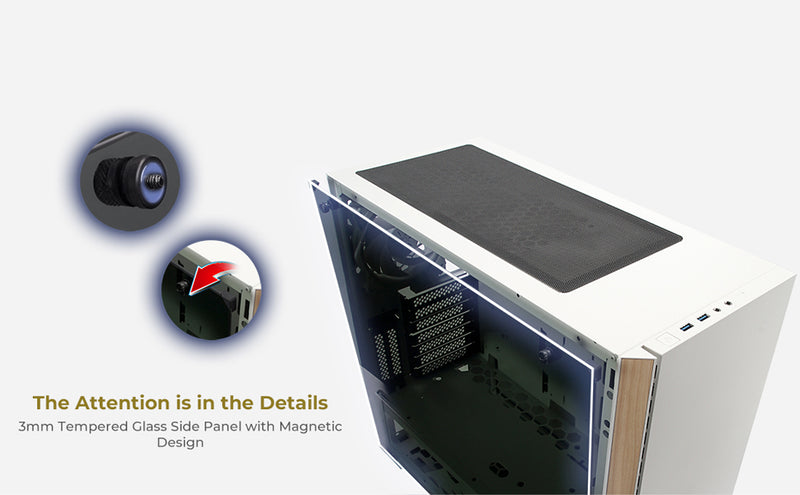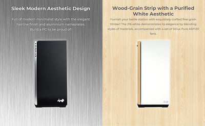 As part of the brand new InWin 2-series, the 216 White possesses a sleek aesthetic design. Combining modern white painted chassis with wooden accents in a style. It supports up to E-ATX motherboard (12” x 13”) and accommodates multiple 3.5”/2.5” storage devices at the same time. The 216 provides high flexibility with cooling performance. Overall, it can support up to 6 fans simultaneously, which enhances cooling performance and can create a stunning gaming rig! And it also comes with InWin Sirius Pure Fan x 3.