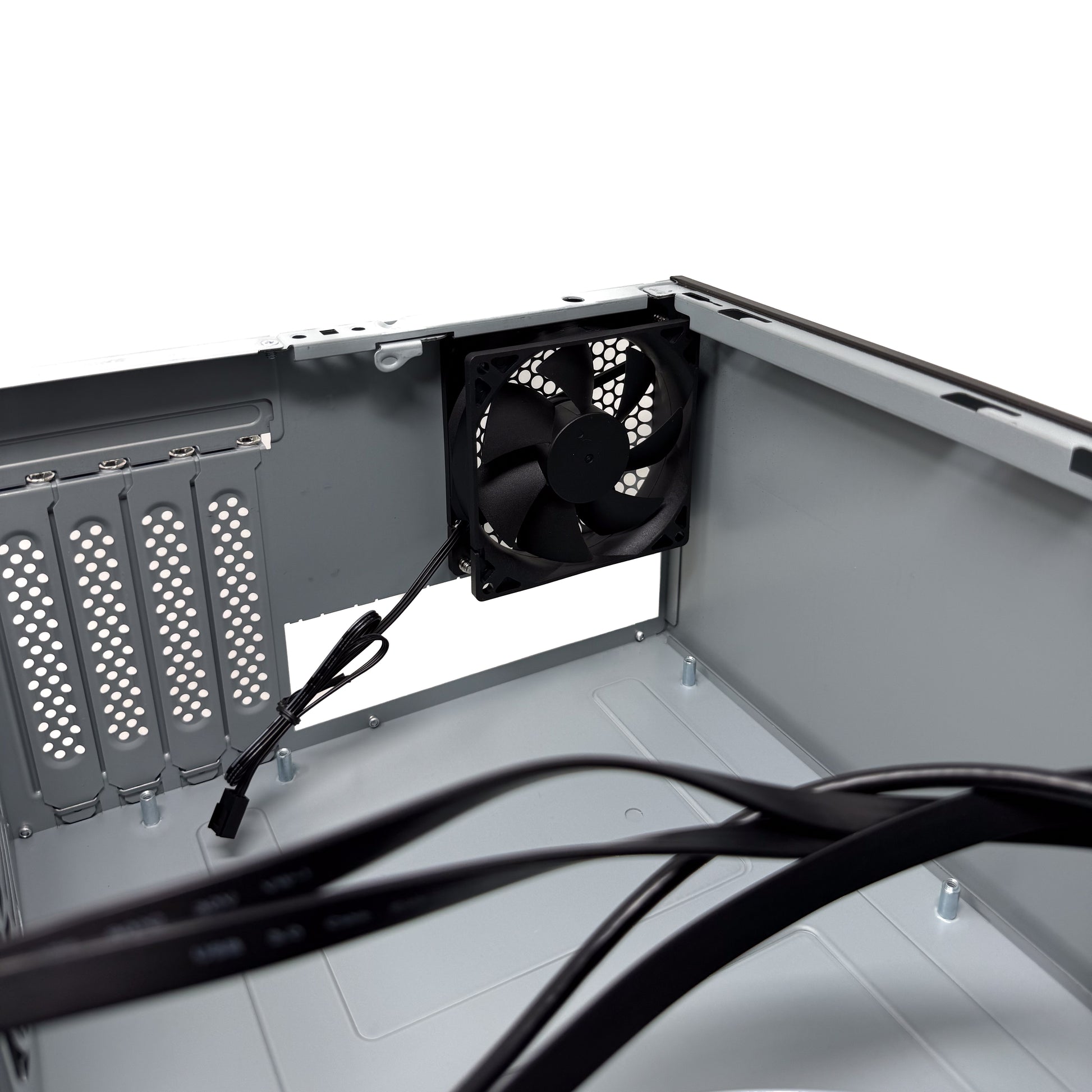 Features two 120 mm front fans and one 92 mm rear fan, with support for up to a 240 mm AIO cooler, enhancing cooling performance with either air or liquid cooling solutions. Providing higher flexibility and scalability in system configuration.