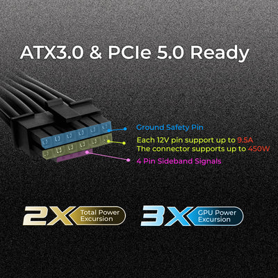 - Includes PCIe 5.0, 16-pin connector with high-quality 16 AWG cable