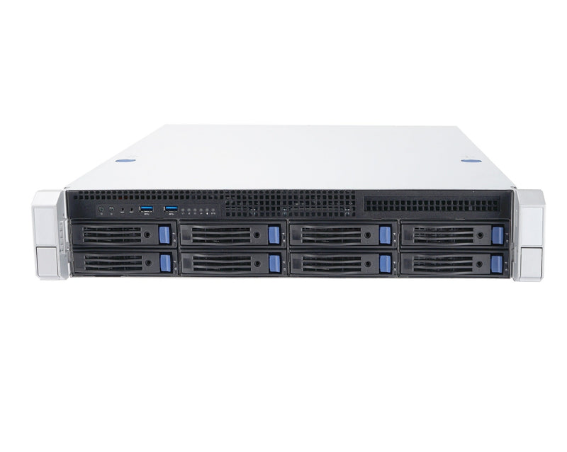 .2U 8x Hot-swappable 2.5” or 3.5” drive bays